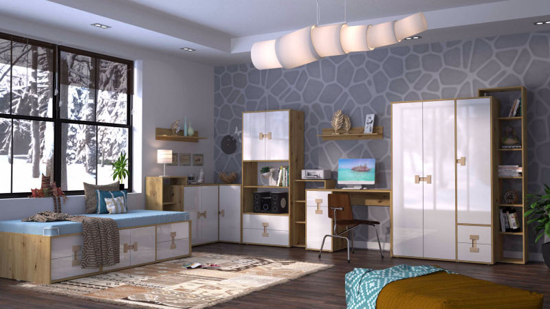 Kolekcja Index powstała głównie z myślą o aranżacji pokoju młodzieżowego. Efektowna kombinacja kolorów na frontach połyskowych świetnie zaprezentuje się także w Twoim salonie.